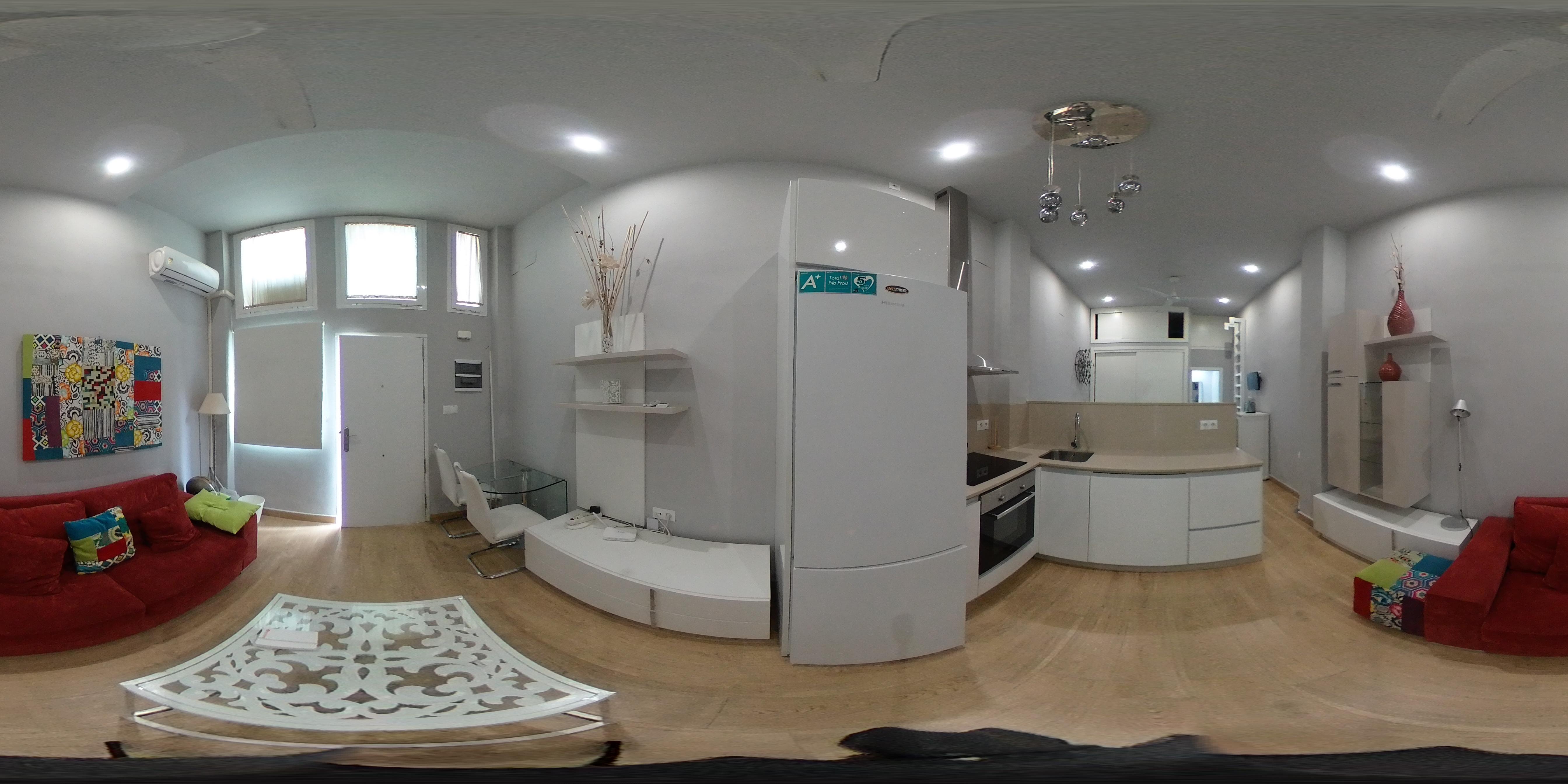 Vivienda adaptada a partir de local comercial, distribuida en 1 dormitorio, salón-comedor con cocina integrada y 1 baño completo.